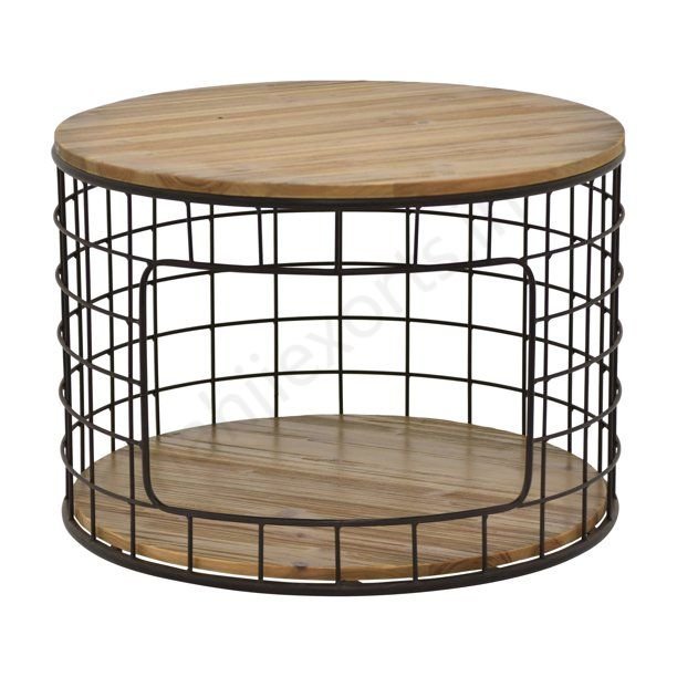 Iron side table with wooden top and base